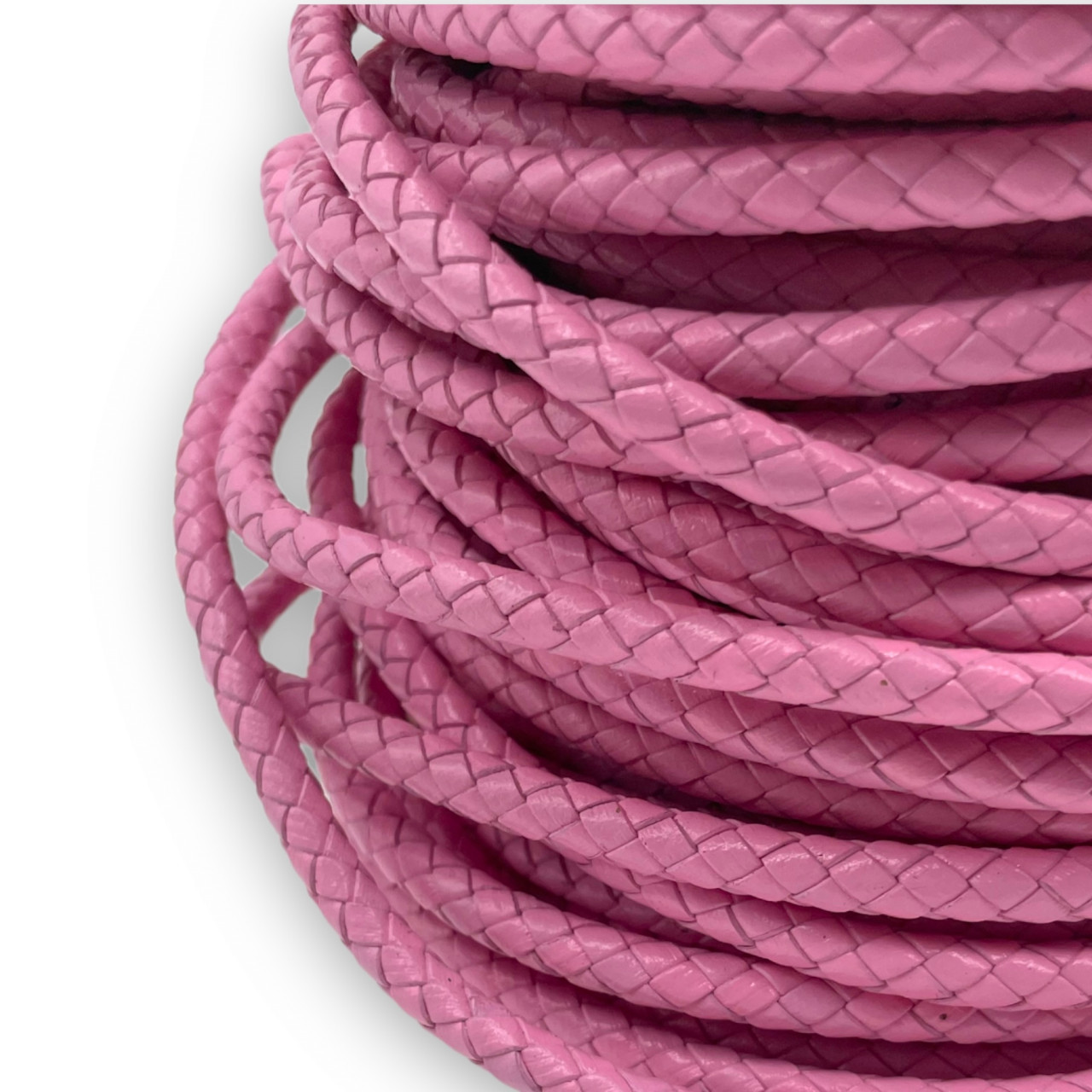 1 Metru Snur Piele naturala impletita 6mm – roz