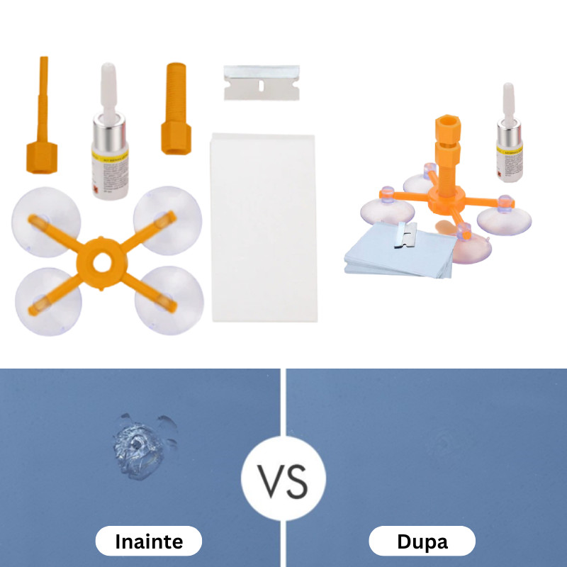 Kit Reparatie Parbrize, reparatie fisuri: Un set pentru repararea daunelor la geamurile auto. Indepartati venele de paianjen urat de pe geam si protejati sparturile de largirea lor. Caracteristicile produsului: Produsul este nou, de inalta calitate. Datorita acestui set, puteti sa va reparati singuri sticla in masina dvs. Poti sa scapi usor si rapid de spatter cauzat mai ales de pietre de pe rotile altor masini. Splintele si zgarieturile adanci rezultate din fisuri vor deveni aproape invizibile, iar geamul va fi protejat de cresterea viitoare a deteriorarilor. Este potrivit pentru repararea daunelor in forma de ochiuri mici, odata ce fisurile longitudinale nu depasesc 15 cm. Datorita cantitatii mari de clei din set, setul este potrivit pentru utilizare reutilizabila. Acesta este returnat la prima utilizare, costul de a le repara de multe ori mai mici decat la serviciile auto autorizate. Efect rapid – intreaga procedura de aplicare a adezivului dureaza cateva minute, iar adezivul se usuca in 10 minute de expunere.