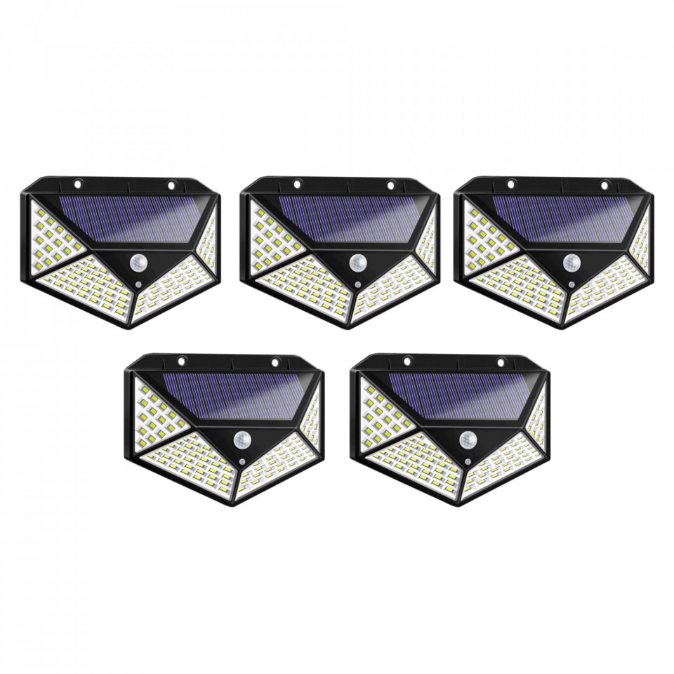 Eficienta energetica În timpul zilei, panoul solar foloseste lumina soarelui pentru incarcarea acumulatorului si transformă energia solară în electricitate și oferă iluminare. Iluminatul in unghiuri diferite Spre deosebire de lampile de 30 led-uri lampile solare cu 100 led-uri iluminează din mai multe părți, acoperă mai multe spații și oferă o iluminare excelentă pentru casa sau afacerea dvs. Iluminarea se face atat din panoul frontal cat si din panourile laterale. 3 MODURI ILUMINARE Acest model beneficiaza de 3 moduri de iluminare de care o sa va indragostiti cu siguranta. MODUL 1 Daca doriti utilizarea lampilor doar pe modul de iluminare bazat pe senzorul de miscare atunci ea v-a sta inactiva pana cand dvs. sau o alta persoana intra in raza de actiune a senzorului ( 5-7 metri) si lampa v-a incepe sa lumineze pentru 20 secunde ( sau cat se detecteaza miscare in raza ei) dupa care se stinge automat. MODUL 2 Modul de veghe cu senzor de miscare – este ideal atunci cand vreti sa oferiti locuintei dvs un aspect deosebit. Acest mod va ofera posibilitatea sa mentineti led-urile lampilor active la o intensitate de 30% iar cand senzorul detecteaza miscare led-urile se aprind 100% din capacitate. MODUL 3 Iluminare Continua – ( ATENTIE – pe timpul iernii sau atunci cand soarele este mai inexistent pe cer durata de iluminare v-a fi mai mica) la o capacitate de iluminare de 100%. Asta inseamna ca va ve-ti bucura de o curte si alei luminate fara a va face probleme ca va impiedicati. Fie ca le utilizati la gradina, garaj, foisor, scari, usa, poarta, lampile va sunt un ajutor de nadejde si cu siguranta o sa va incante privirea dvs cat si a vecinilor dvs. Este foarte usor de utilizat si instalat – fie ca folositi suruburile si diblurile incluse in pachet sau daca nu doriti sa gauriti gardul/peretele ele se pot lipi si cu silicon/banda dublu adeziva etc. SPECIFICATII: Panou solar: 0,44 w Capacitate acumulator 1800 mAh Putere led: 0,2W/LED X 100 LED DIMENSIUNE LAMPA: 12.5cm x 9.5 cm x 4.8 cm . Le puteti instala foarte simplu si rapid fara prea multe batai de cap. Scapi de improvizatiile electrice care iti pot pune in pericol viata si locuinta Te bucuri de o lumina alb-rece, lumina solara si cel mai important este ca NU platesti facturi la energie electrica De ce sa mergi prin intuneric in locuri in care nu ai lumina constant ? Lampile se incarca la lumna zilei sau la soare. Deci vor functiona perfect si pe timp de iarna! NOTA! Daca nu este soare, lampa nu se va incarca si nu se va aprinde. Aceasta nu se incarca la lumina. Pe timpul iernii sau cand nu este soare puternic, va sugeram sa folositi lampa pe modul senzor de miscare pentru a beneficia mai mult timp de lumina oferita. Cand folositi pentru prima data lampa, va rugam sa o lasati la soare minim o zi sa se incarce. Timpul de incarcare si eficienta de incarcare a panoului solar pot fi afectate de vreme si de pozitia de instalare.